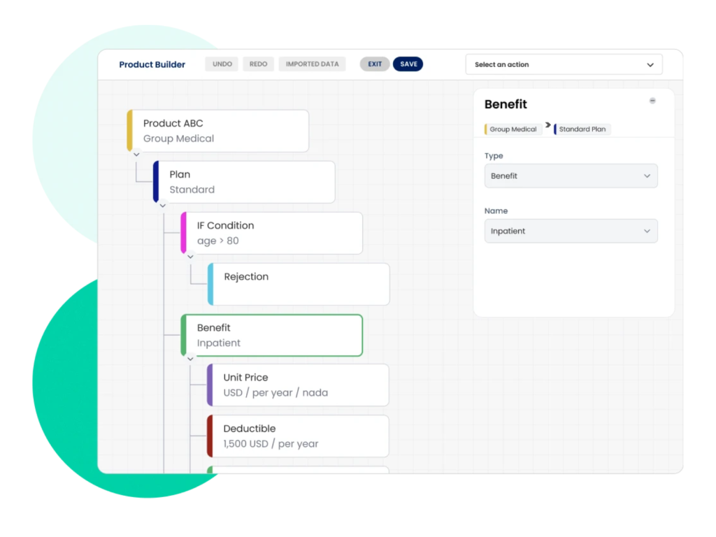 - An insurance company could leverage the no-code product builder to quickly launch new health insurance products.