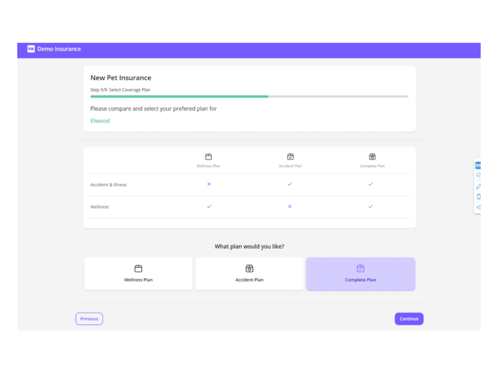 - A traditional insurer could leverage the template to create a modern, user-friendly quote-and-buy experience for their existing products.