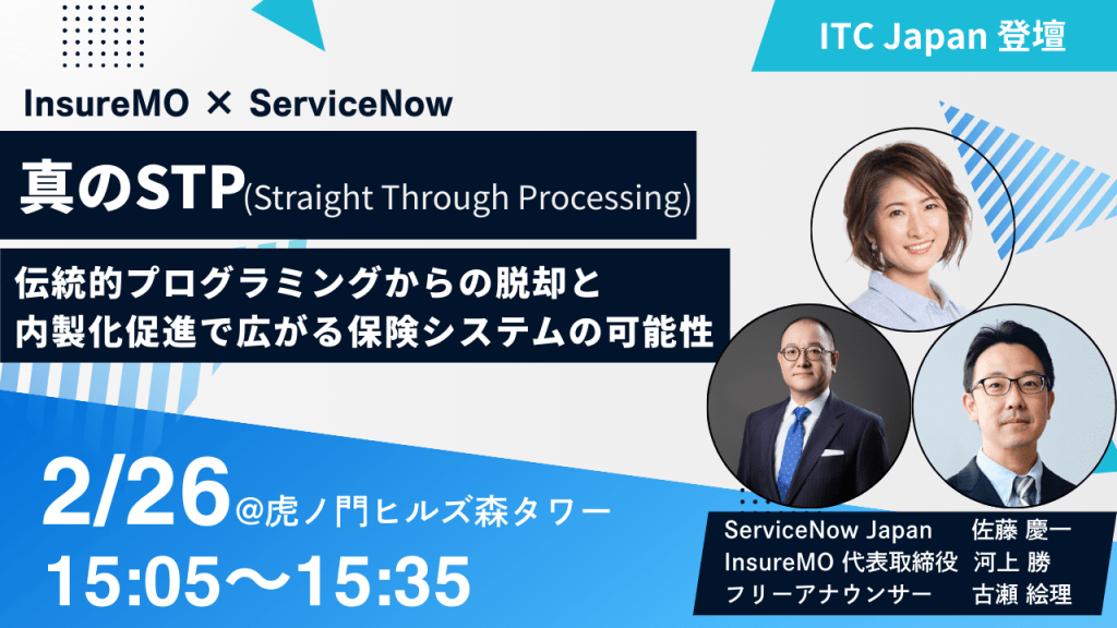 InsureMO × ServiceNowで実現する真のSTP (Straight Through Processing) / 〜伝統的プログラミングからの脱却と内製化促進で広がる保険システムの可能性〜- 時間 2026年2月26日(木)15:05~15:35